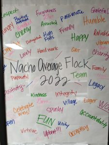 June: Every year we take a few hours to decide what we as a team will commit to that year. June 2022 we also decided to give our team a name and #NachoAverageFlock was born.